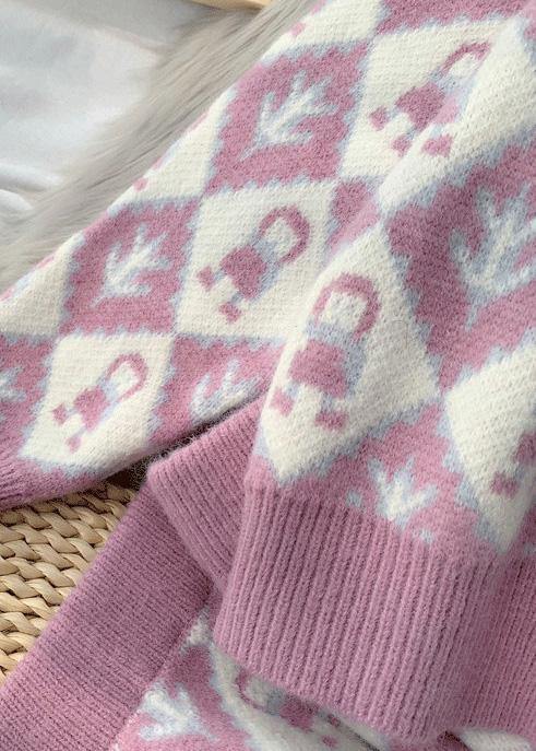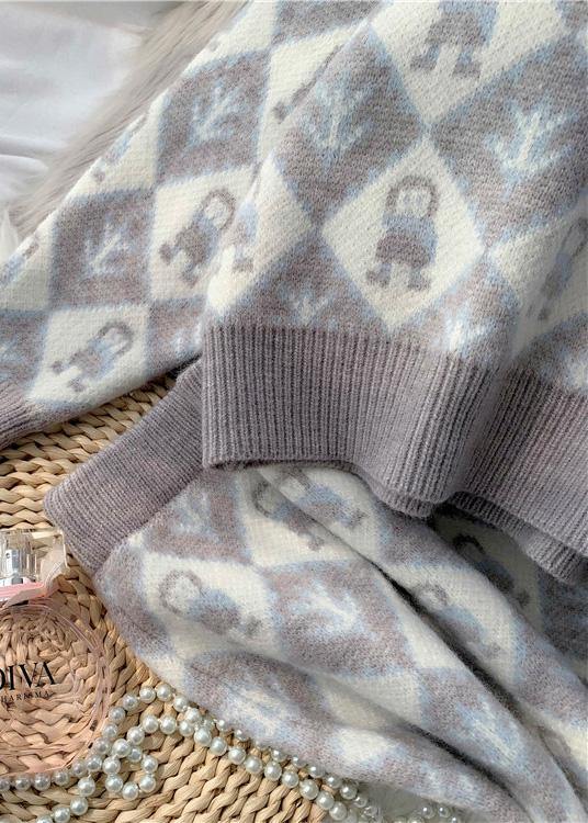 2025年 秋冬 新作 ファッション セットアップ カートゥーン柄 ニットセーター × ハーフスカート ラウンドネック セーター 2点セット(上下セット)