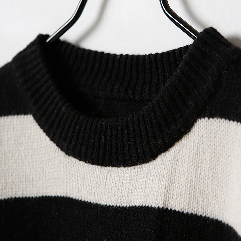エレガント ブラック×ホワイト ウールコート レディース トレンド 大きいサイズ ミディ丈 サイドスリット Oネック 春 アウター