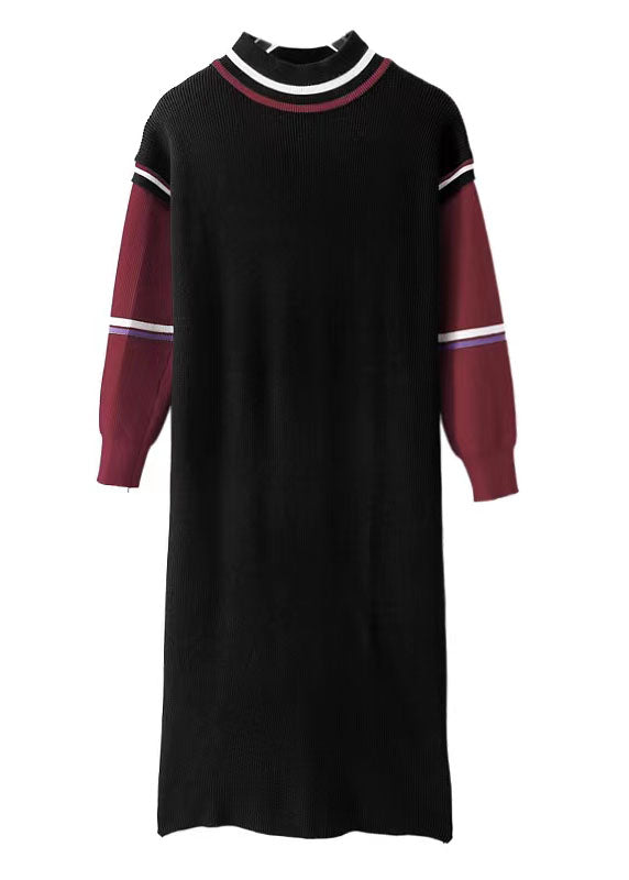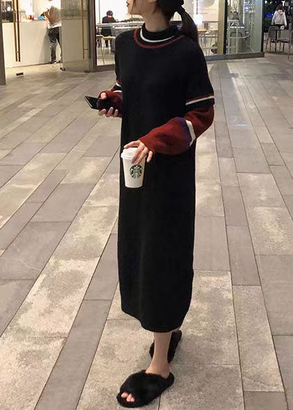 シンプル Oネック ラフエッジ セーターウェザー アップサイクル ブラック ヒップスター ニット